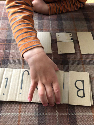 This is such a quick activity to make and is a really good way for children to practise spelling their name. Write your child's name onto a piece of carboard/paper. Make a second one but this time cut it into individual letters.